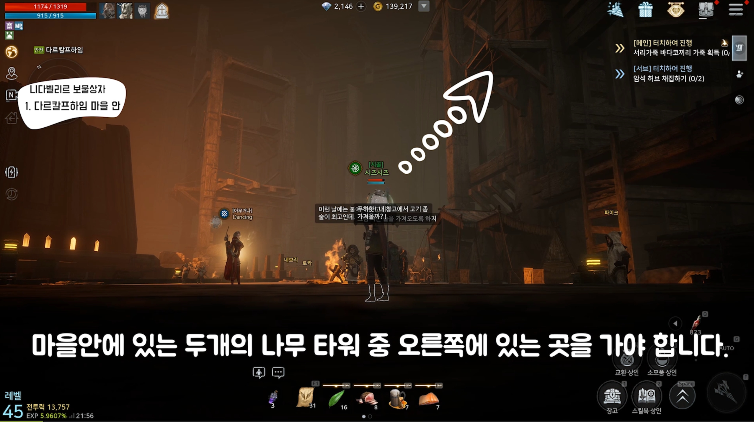 다르칼프하임 마을로 이동 후 화면에 표시된 곳으로 갑니다.