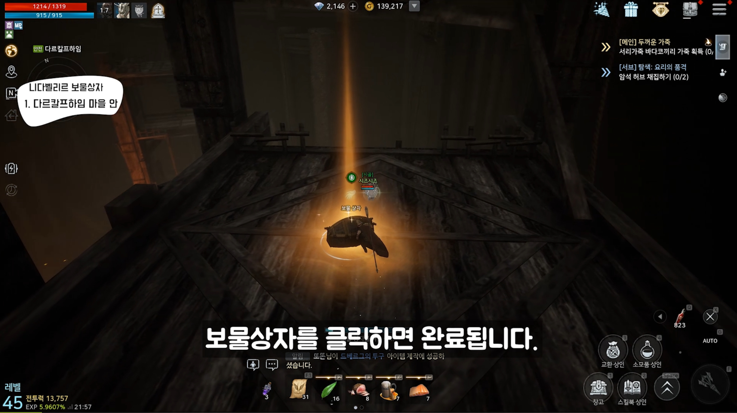 해당 위치로 가면 보물상자가 보입니다.