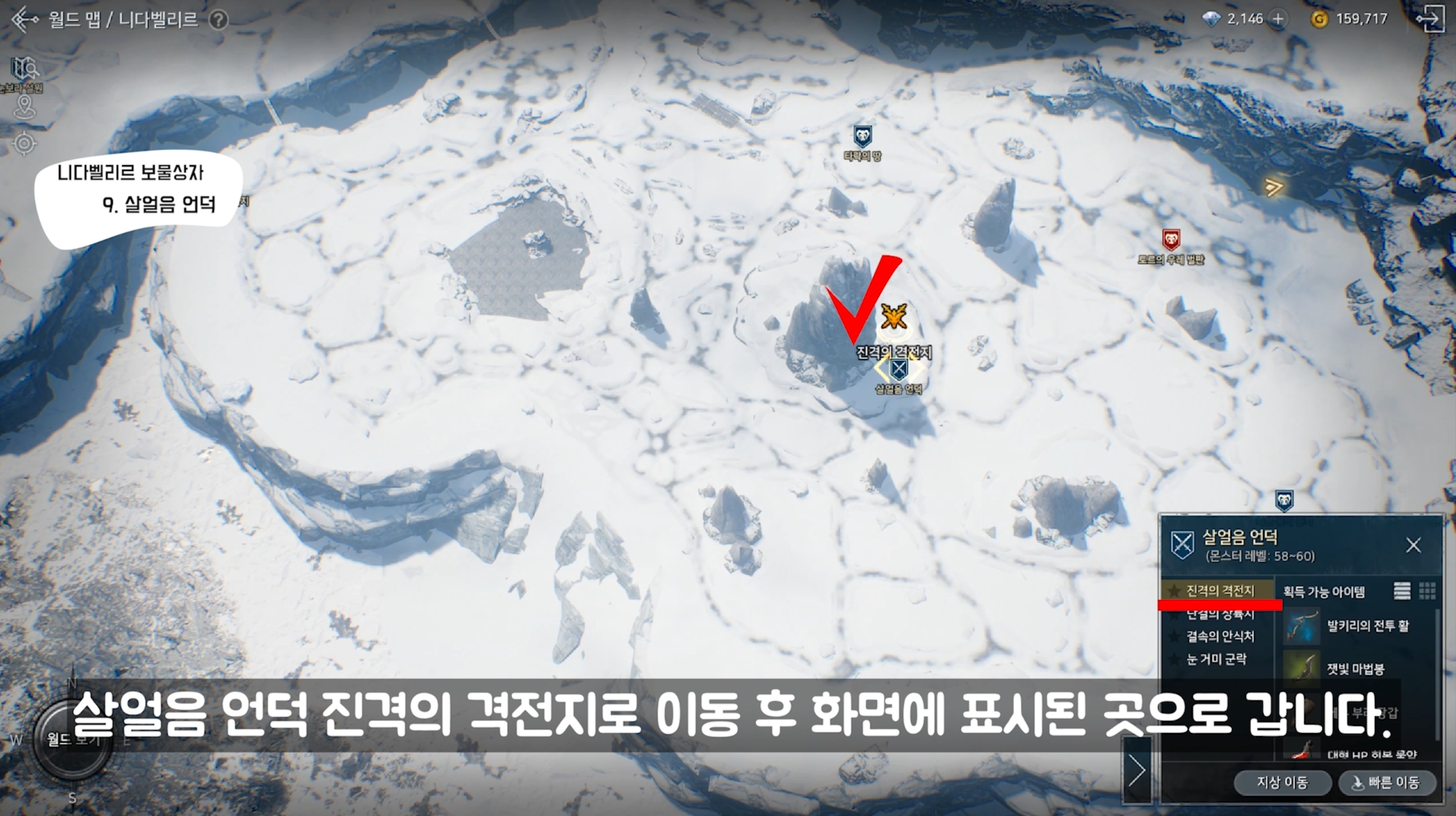 살얼음 언덕 진격의 격전지로 이동 후 화면에 표시된 곳으로 갑니다.