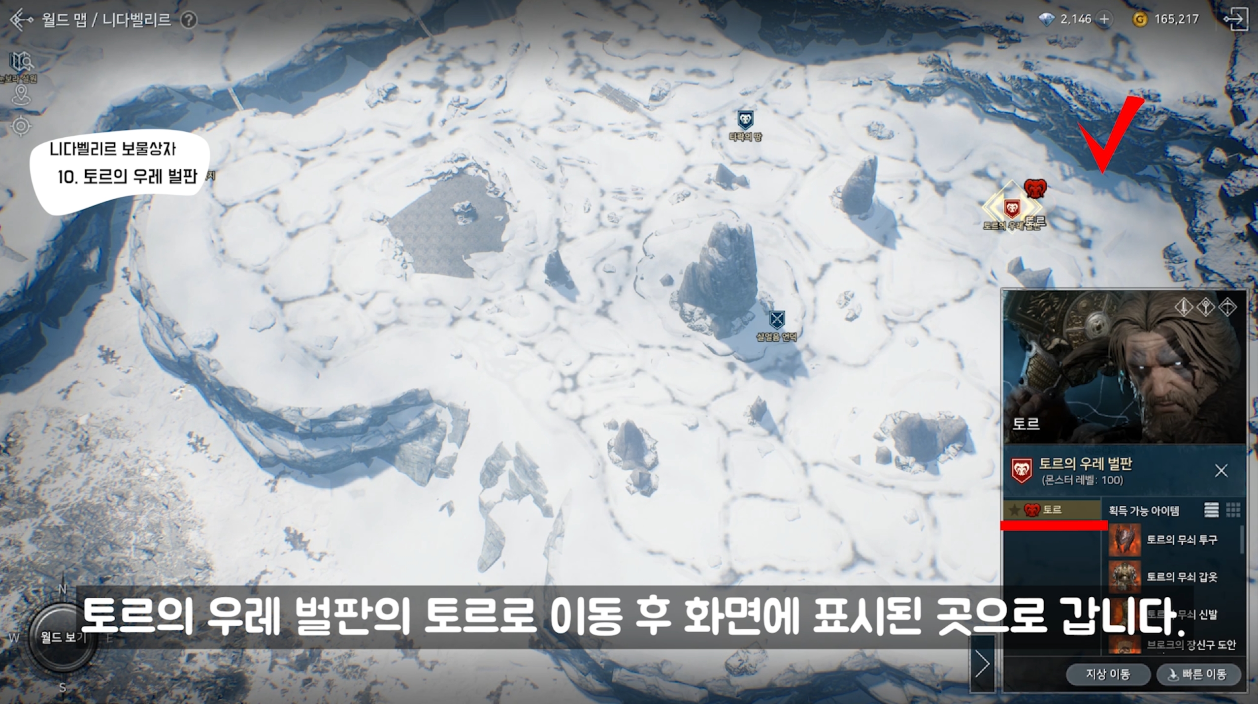 토르의 우레 벌판 토르로 이동 후 화면에 표시된 곳으로 갑니다.